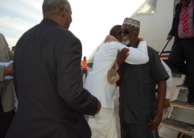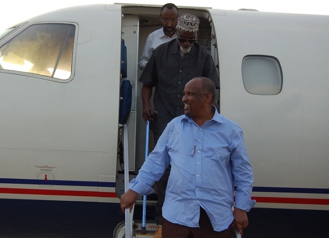 Sabti, Ogoosto 30, 2014 (HOL) — Wafdigii wasiirrada xukuumadda ee uu hoggaaminayay wasiirka arrimaha gudaha Soomaaliya, C/llaahi Godax Barre iyo Col. Barre Hiiraale ayaa Muqdisho yimid gellinkii dambe ee maanta, kaddib markii xal laga gaaray khilaafaadkii ka taagnaa Jubbooyinka dibna loogu celiyay Kismaayo ciidankiisii uu hoggaaminayay Col. Barre Aadan Shire.