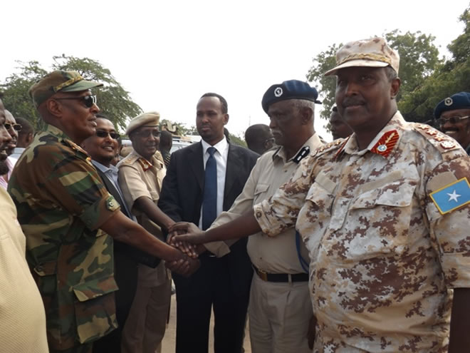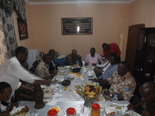 Munaasabadda ayaa waxaa goobjoog ka ahaa; taliyaha ciidamada sir-doonka iyo nabad-sugidda Qaranka, Jen. C/raxmaan Tuur yare, taliyaha ciidamada xoogga dalka, Jen. Daahir Aadan Cilmi (Indha-qarshe), abaanduulaha, Jen. C/risaaq Khaliif Cilmi, guddoomiyaha gobolka Banaadir, Xasan Muun-gaab, iyo taliyaha ciidamada booliiska gobolka Banaadir, Jen. Madaale.
