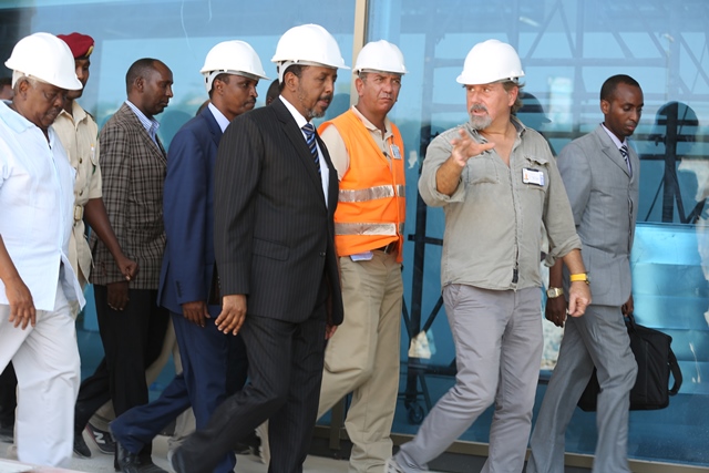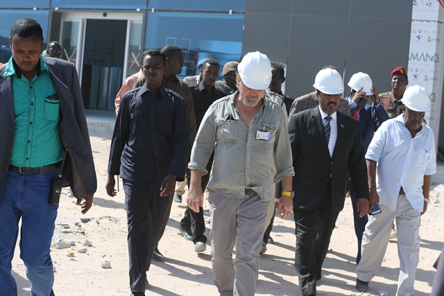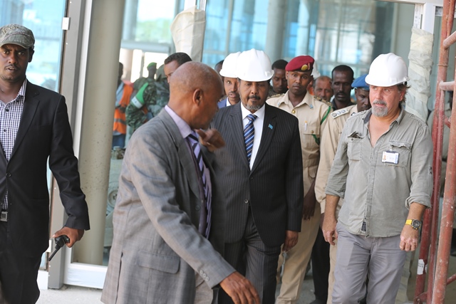 Arbaco, December 10, 2014 (HOL) — Madaxweynaha Soomaaliya Xasan Sh. Maxamuud ayaa kormeeray dhismaha garoonka diyaaradaha Muqdisho lagu wado, kaasoo ay fulinayso shirkadda FAVORI oo laga leeyahay dalka Turkiga.