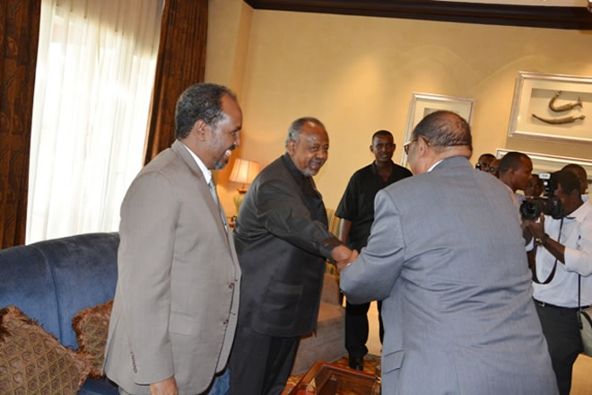 Sabti, December 20, 2014 (HOL) — Madaxweynaha dalka Jabuuti Ismaaciil Cumar Geelle ayaa kulan qado ah isugu keenay labadda madaxweyne ee dowladda Soomaaliya Xasan Sh. Maxamuud iyo Somaliland. Axmed Maxamed Siilaanyo.