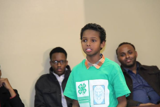 Talaado, December 23, 2014 (HOL) — Ururka KA JOOG oo kala-taliya waxbarashada iyo ka hortagga dambiyada dhallinyaradda Soomaaliyeed ee ku nool dalka Maraykanka ayaa kulan u qabtay ardayda Soomaaliyeed ee degen gobolka Minnesota, gaar magaalooyinka, St Paul, Minneapolis iyo Eden Preire, kuwasoo xilligan laga caawiyo waxbarashada iyagoo ku jira barnaamij lagu magaacabo 4H oo ay iska kaashanayaan KA JOOG iyo Jaamacadda Minnesota.