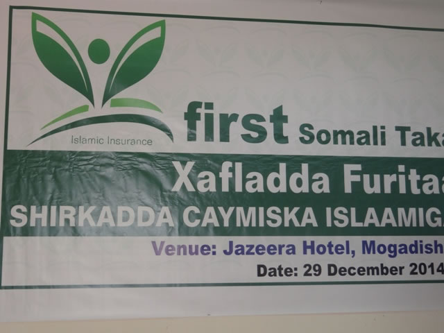 Isniin, December 29, 2014 (HOL) — Shirkaddii u horreysay oo Caymis ah ayaa 24-sano kaddib maanta laga hirgeliyay Soomaaliya, iyadoo munaasabaddii furitaanka shirkadda Caymiska Islaamiga ay ka qayb-galeen mas'uuliyiin ka tirsan dowladda Somalia iyo ganacsato.