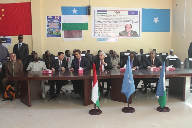 Khamiis, December 04, 2014 (HOL) — Madaxweynaha Puntland, Cabdiweli Max'ed Cali Gaas ayaa maanta dhagax-dhigay mashruuc lagu casriyeynayo garoonka diyaaradaha ee magaalada Boosaaso, kaasoo ay fulinayso shirkad laga leeyahay dalka Shiinaha oo lagu magacaabo CCECC.