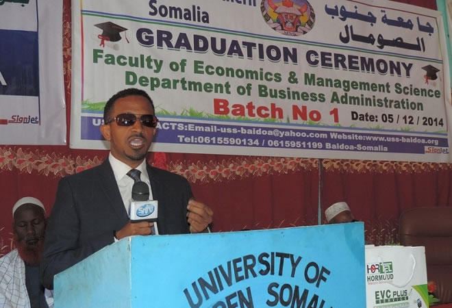 Jimco, December 05, 2014 (HOL) — Magaalada Baydhabo ee xarunta gobolka Bay ayaa lagu qabtay maanta xaflada ay ku qalin-jabinayeen 40-arday oo Jaamacadda Koonfur-galbeed Somalia ee Baydhabo ka bartay Maamulka iyo Maareynta, kuwaasoo ah dufcaddii toddobaad ee ka baxa Jaamacadda.