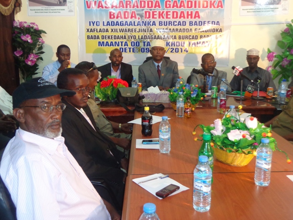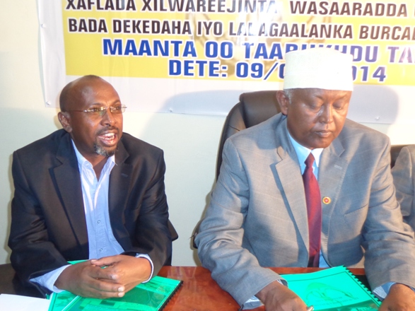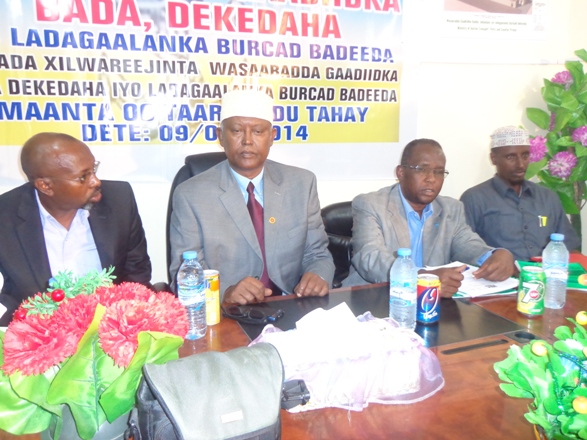 C/majiid Samatar Maxamuud (Jaafaan) oo ah agaasimaha guud ee wasaaradda dekedaha gaadiidka bada iyo la-dagaalanka iyo burcad-badeedka ayaa ugu horrayn xafladda xil-wareejinta kahadlay.