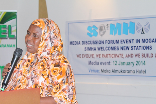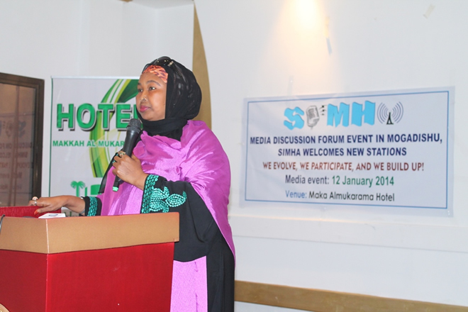 Xabiibo Axmed Jimcaale “Biibto” oo ah saxafiyad rug caddaa ahna tifaftirana ka ah wargeysyka maalinla ah ee Mogadishu Times oo iyaduna goobta hadal ka jeedisay ayaa sheegtay in dhinaceeda ay soo dhaweyneyso SIMHA ayna qayb ka tahay, waxayna ku baaqday in la muujiyo kalsooni si loo gaaro ah-daafta saxda ah ee SIMHA.