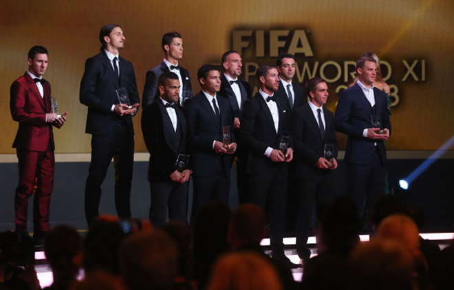 Dhinaca kale waxaa xafladda gudaheeda looga dhawaaqay line-upka rasmiga ee kooxda sannadka adduunka, iyadoo ay ka soo dhex muuqdeen laacibiin halis ah oo ka ciyaaro naadiyo kala duwan oo Yurub ah.