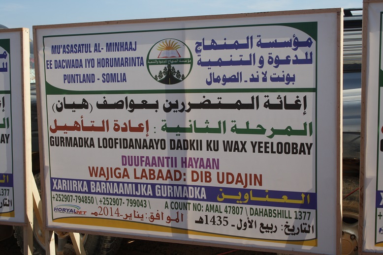 Sheekh Maxamuud Xaaji Yuusuf oo ah guddoomiyaha guddiga loo xil saaray qaybinta xoolaha, ayaa sheegay in gurmad ururinta ay bilaabeen maalintii musiibadu dhacday oo ku beegnayd 11-11-2013 ayna soo gabagabeeyeen 17-1-2014 "12kii iyo 13kii December ee sanadkii aynu soo dhaafnay isla meeshaan meel ku dhaw waxaa lagu qaybiyay ari 15-800 oo Neef ah (shan iyo toban kun iyo sideed boqol oo neef ah) arigaasi waxaa loo qaybiyay qoysas gaaraya 672 iyadoo 516 ka mid aha la siiyay neefaf gaaraya 50, 156 ka mid ah qoysaskaasna la siiyay ilaa 60 Neef,sidoo kale bishan bilowgeedii waxaa raashin culimada kasoo gaaray dalka Kuwait loo qaybiyay qoysas gaaraya 3000 oo reer, Maanta Wajigii 2baad ayaanu isugu nimid inaan qaybino Ari gaaraya 10,835 neef" Sheekh Maxamuud ayaa yiri.