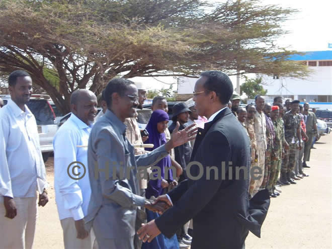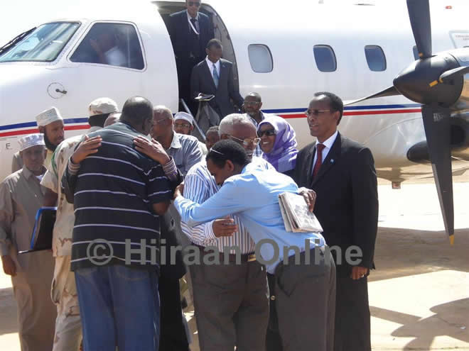 Wafdigan ayaa markii uu kasoo dagay garoonka waxaa soo dhaweeyay madax ay kamid yihiin madaxweeyne kuxigeenka maamulka Jubba Jen C/laahi Sheekh Ismaaciil (Fartaag), wasiirro ka tirsan maamulka Jubba iyo masuuliyiin kale.