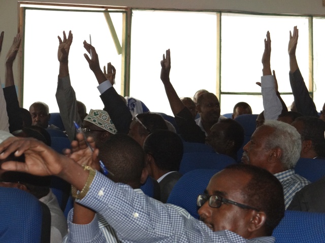 Codeynta oo ahayd mid gacan-taag ah ayaa waxaa codeeyay 233 xildhibaan iyadoo 186 ka mid ah ay ku codeeyeen HAA, halka 46 mudane ay iyaguna ku codeeyeen MYA, waxaana ka aamusay hal mudane oo keliya.