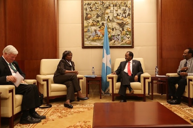 “Soomaaliya waxay uga mahad-celinaysaa Maraykanka taageerada dhanka amniga iyo qalabeynta ciidamada dowladda Soomaaliya, taasoo ah mid aan ku gaari karno nabad iyo horumar taam ah,” ayuu madaxweynuhu hadalkiisa kusoo gaba-gabeeyay.