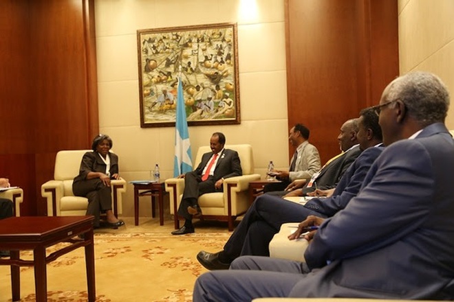 Xasan Sheekh ayaa sidoo kale shirar kala duwan la qaatay madax Afrikaan ah, kuwaasoo uu ka mid ahaa ra’iisul wasaaraha Itoobiya, Heilemeriam Desalegn, sidoo kale wuxuu la kulmay ergayga Marekanka ee Afrika, Linda Thomas Greenfielf. Kulammadan ayaa waxaa diiradda lagu saaray sidii loo soo af-jari lahaa Al-shabaab inta lagu jiro sannadkan 2014-ka.