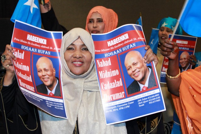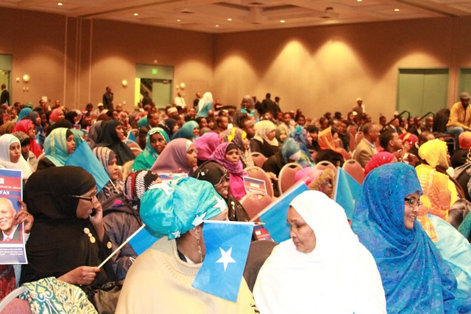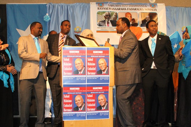 Axad, Janaayo 05, 2014 (HOL) — Xaflad lagu taageerayay ra’iisul wasaaraha cusub ee Soomaaliya, Cabdiweli Shiikh Axmed oo ay ka qayb galeen shacab aad aad u fara badan ayaa lagu qabtay Minneapolis Convention Center ee magaalada Minneapolis ee gobolka Minnesota.
