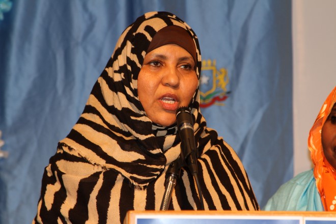Dadkii Soomaaliyeed ee goobta ka hadlay waxaa ka mid ahayd Caasho Abuukar Qaasim una hadashay kaalinta haweenka, iyadoo mudane C/weli ka codsatay inuusan illoobin kaalintii dumarka.