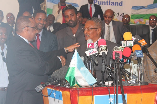 Arbaco, Janaayo 08, 2014 (HOL) — Magaalada Garoowe ee xarunta maamulka Puntland ayaa waxaa maanta ka dhacday doorashada madaxweynaha iyo madaxweyne ku xigeenka Puntland, xilalkaas oo ay kusoo kala baxeen madaxweynaha cusub ee Puntland, C/weli Maxamed Cali Gaas iyo madaxweyne ku xigeenka cusub ee Puntland, C/xakiin C/llaahi Xaaji Cumar (Camey).