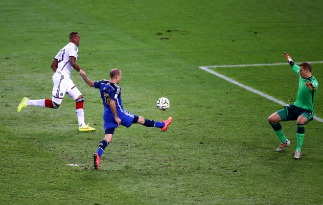 Inkastoo xulka Argentina ay isku dayeen inay goolkaas iska soo gudaan ayaanay haddana u suurogelin waqtiga ciyaarka ka harsan oo ahaa toddobada daqiiqo oo keliya, waxaana ciyaarta daawanayay madax ay ka mid tahay ra’iisul wasaaraha Jarmalka, Angela Merkel, madaxweynaha Ruushka, Vladimir Putin iyo xubno kale oo caalami ah.