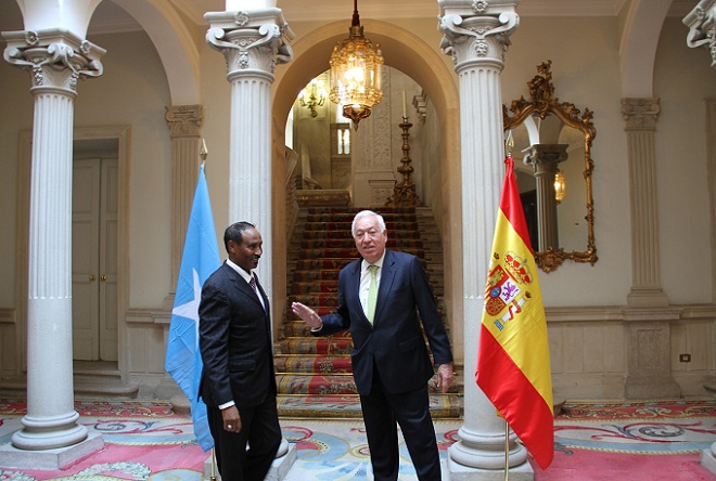 Isniin, July 14, 2014 (HOL) — Wasiirka arrimaha dibadda Soomaaliya, C/raxmaan Ducaale Bayle ayaa maanta kula kulmay magaalada Madrid ee caasimadda Spain dhiggiisa dalkaas, José Manuel García-Margallo oo ay ka wada-hadleen xoojinta xiriirka iyo iskaashiga labada dal.