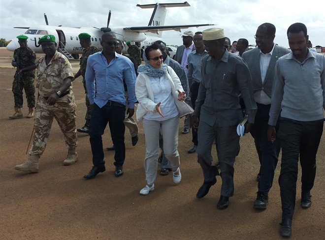 Arbaco, July 23, 2014 (HOL) — Wafdi ka socday Qaramada Midoobay, isla markaana ay hoggaamineeysay ku xigeenka kaaliyaha xoghayaha guud ee Qaramada Midoobay, Fatiha Saruur ayaa maanta soo gaaray magaalada Kismaayo, iyagoo kulan la qaatay madaxda ugu sarreysa maamulka Jubba.