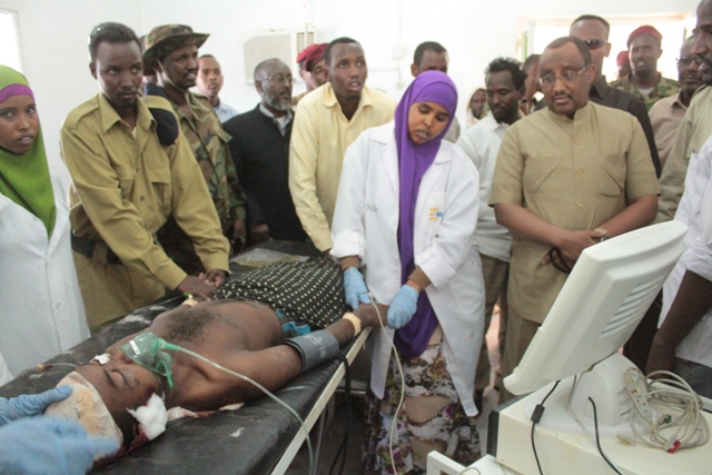 Madaxweynaha Puntland oo askarta dhaawaca ah ku booqday isbitaalka ayaa tacsi u diray eheladii iyo qaraabadii ay ka tageen saddexda askari ee geeriyootey, isagoo kuwa dhaawaca ahna u rajeeyey caafimaad deg deg ah.