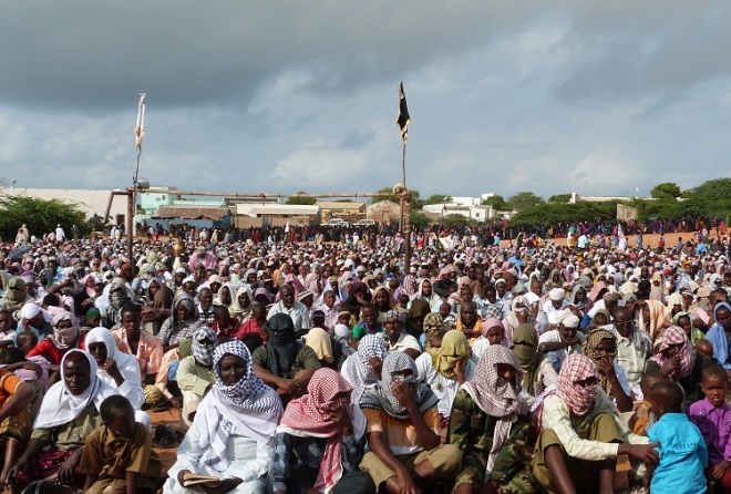 Isniin, July 28, 2014 (HOL) — Kumannaan dadweyne ah oo ku noo degmada Baraawe ee gobolka Shabeellada Hoose iyo mas’uuliyiin ka tirsan Al-shabaab ayaa maanta salaaddii ciidda ku tukaday fagaaro weyn oo ku yaalla degmadaas.