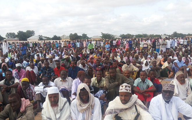 Madoobe Nuunnow iyo Cabdi Hoosoow ayaa khubado u jeediyay shacabkii ka qaybgalay tukada salaaddii ciidda ee maanta, iyagoo ugu baaqay in amniga ay kala shaqeeyaan ciidamada iyo inay muujiyaan isku-duubni.