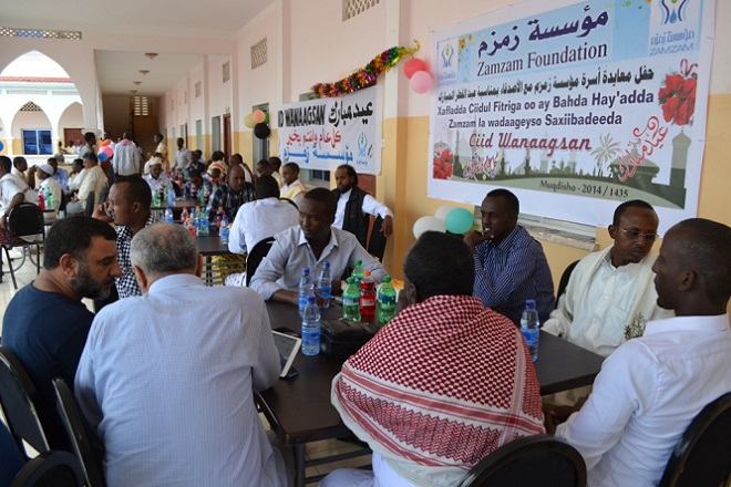 Arbaco, July 30, 2014 (HOL) — Maalintii Ciiddul fitriga oo ku beegnayd 28-kii bishan ayay hay’adda wadaniga ah ee Zamzam Foundation waxay qabatay xaflad loogu dabaal-degaayay ciidda, iyadoo xafladda lagu qabtay xarunta Anadolia oo ku taalla degmada Wadajir ee gobolka Banaadir.