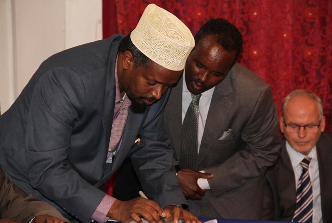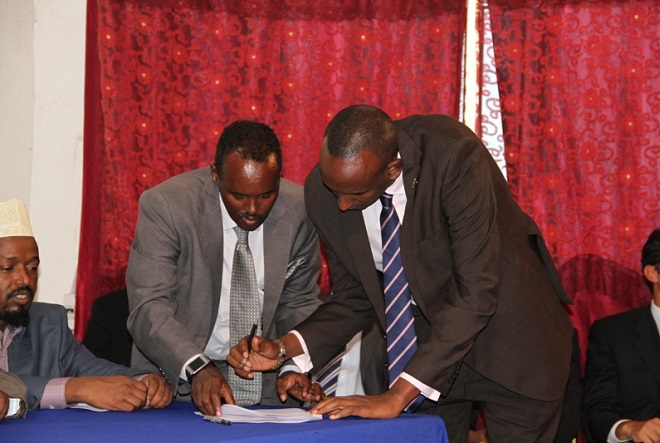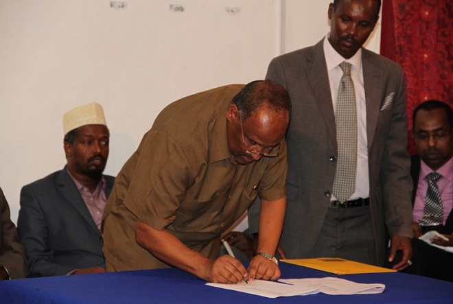 Wasiirka arrimaha gudaha iyo federaalka, Cabdullaahi Goodax Barre ayaa akhriyay qodobbada oo ka koobanaa 11 oo lagu wajahayo dhismaha maamul loo dhan yahay oo yeeshaan gobollada dhexe ee Somalia, isagoo sheegay in heshiiskan uu dhabbaha u xaarayo xal laga gaaro maamullada yar-yar ee ka jira gobollada dhexe, loogana gudbayo maamul goboleed ay ku midaysan yihiin dadka deegaannadaas ku nool. Iyadoo intaas kaddib ay heshiiskaan saxiixeen wakiillo matalayay Galmudug, Ahlusunna, wasiiro xukuumadda ka tirsan iyo xubnaha ka socday beesha caalamka.