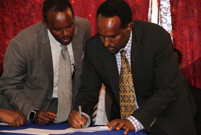Arbaco, July 30, 2014 (HOL) — Magaalada Muqdisho ayaa maanta lagu saxiixay heshiis maamul KMG ah loogu dhisayo gobollada Gal-guduud iyo Mudug oo ka tirsan gobollada ku yaalla bartamaha Soomaaliya, iyadoo heshiiskaas saxiixiisa ay goobjoog ka ahaayeen xubno ka kala socday maamullada Galmudug iyo Ahlusunna Waljamaaca, laakiin waxaa maqnaa xubnihii matalayay maamulka Ximin iyo Xeeb; inkastoo qoraalkii kasoo baxay madasha shirka uu ka muuqday saxiixa ruux heshiiska ku matalayay Ximan iyo Xeeb.