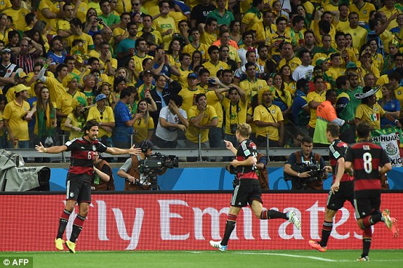 Qaybtii hore ee ciyaarta ayaa lagu kala nastay 5-0 uu hoggaanka ku hayay Jarmalka, iyadoo taageerayaasha Brazil ee garoonka joogay ay la ilmeeyeen guul-darrada ku dhacday xulka dalkooda.