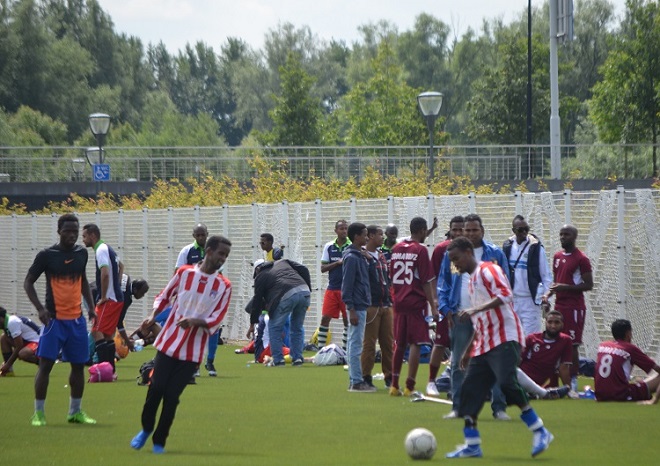 Axad, June 22, 2014 (HOL) — Waxaa magaalada Amsterdam ee dalka Holland lagu soo gaba-gabeeyay 21-kii bishan koobka kubadda cagta Soomaalida ee HIRDA Summer Cup 2014, kaasioo ay sannadkaan ku loolamayeen illaa iyo 16-kooxood oo isaga kala yimid gobollada kala gedisan ee Holland iyo koox ka timid magaalada Antwerpen ee Beljium.