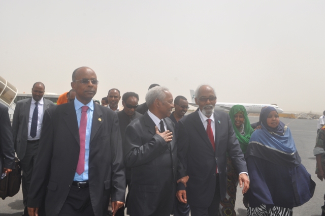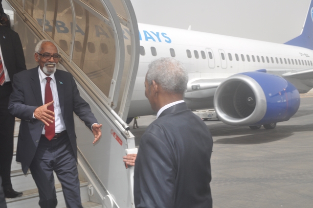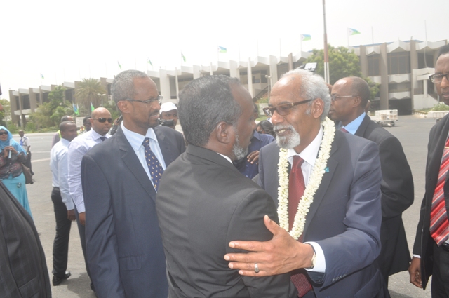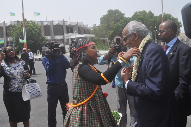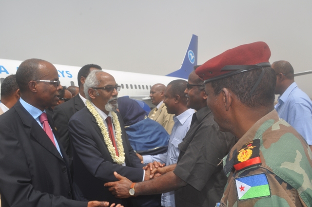 Wafdiga ayaa waxaa garoonka diyaaradaha Jabuuti kusoo dhaweeyey xubno uu ka mid ahaa guddoomiyaha baarlamaanka Jabuuti, ku xigeenkiisa iyo xildhibaanno ka tirsan baarlamaanka Jabuuti.
