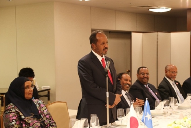 Madaxweyne Xasan Sheekh ayaa caawa loo sameeyay casho sharaf ay ka qayb-galeen, wakiilka dowladda Jabbaan u qaabilsan Afrika, xildhibaanno ka socday dolwadda Jabbaan iyo mas’uuliyiin ka tirsan wasaaradda arrimaha dibadda Jabbaan.