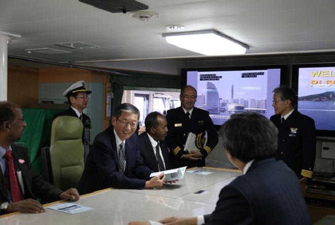 Arbaco, Maarso 12, 2014 (HOL) — Madaxwenaha Soomaaliya, Xasan Sheekh Maxamuud oo maalntii labaad booqasho ku jooga dalka Jabbaan ayaa maanta tagay dekadda magaalada Yokohama ee Jabbaan.