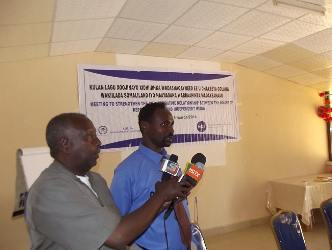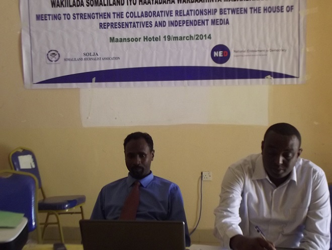 Sidaana waxaa la iskula qaatay kulan shalay ka dhacay huteelka Maansoor ee magaalada Hargaysa kulankaas oo uu soo diyaariyay ururka SOLJA ayna maal galisay hay’ada horumarinta dimuqraadiyada ee NED.