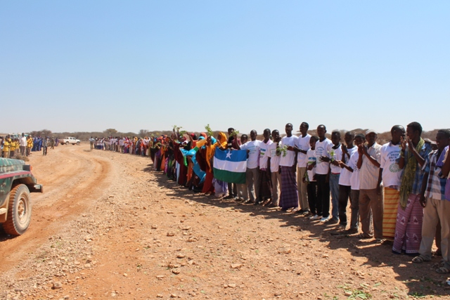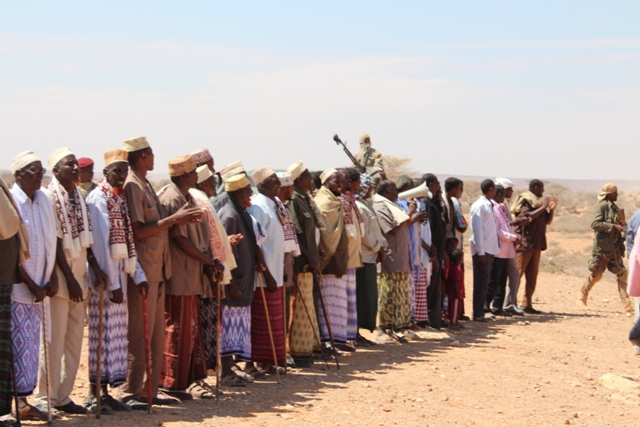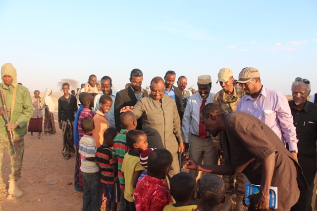 Dadweyne boqollaal gaaraya oo ruxayey calammo iyo caleemo qoyan ayaa Madaxweynaha iyo wafdigiisa si diirran usoo dhoweeyey. Madaxweynaha oo dadkii soo dhoweeyey la hadlayey ayaa sheegay in dowladdiisu ay xoogga saari doonto degmooyinka laamiga ka baxsan, maadaama badi dadka reer Puntland ay ku nool yihiin deegaanada jidka dheer ee laamiga ah ka durugsan.