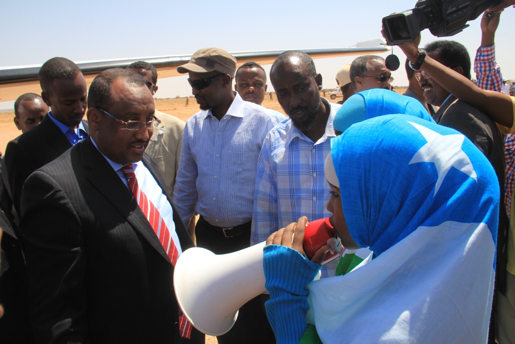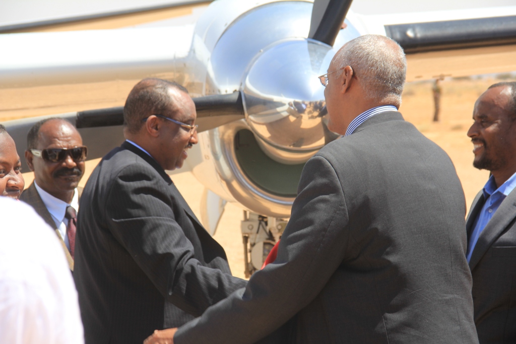 Wafdiga madaxweynaha oo ay kamid yihiin wasiirka arrimaha gudaha iyo wasiirka warfaafinta, waxaa si diirran loogu soo dhoweeyey garoonka diyaaradaha ee Garoowe. Mas'uuliyiin dolwadda ka tirsan oo madaxweyne ku-xigeenka, guddoomiyaha baarlammaanka, xubno ka tirsan golaha wasiirrada iyo xildhibaanno ay kamid yihiin ayaa soo dhoweynta wafdiga madaxweynaha ka qayb galay.