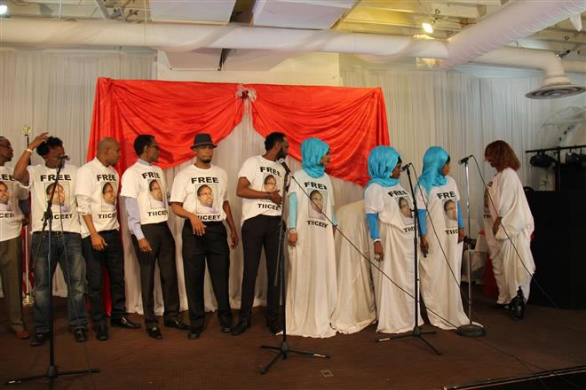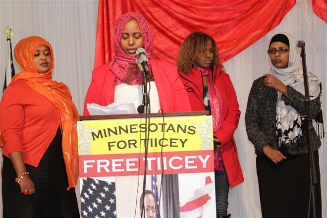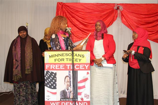 Isniin, March 03, 2014 (HOL) - Kulan qaylo dhaan ah oo ay soo abaabuleen jaaliyadda Soomaaliyeed ee gobolka Minnesota ,laguna dalbanayay in xabsiga laga sii daayo Madaxwaynihii hore ee Maamulka Ximan iyo Xeeb Max'ed Adan Tiicey Habeenkii Sabtiga lagu qabtay Hallka Safari ee magaalada Minneapolis.