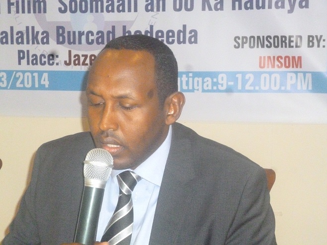 Talaado, Maarso 04, 2014 (HOL) — Hoteelka Jasiira ee magaalada Muqdisho ayaa maanta lagu qabtay kulan looga hadlayay burcadbadeedda, kaasoo lagu soo bandhigay filim ka hadlaya sababaha keenay hoos u dhaca ku yimid falalkii burcadeednimada Somalia labadii sano ee ugu dambeysay.