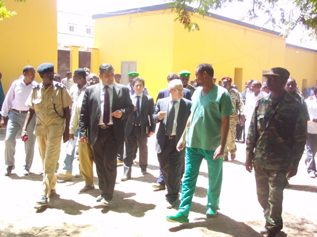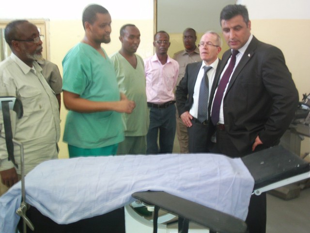 Saraakiisha Turkiga waxaa ku soo dhaweeyay isbitaalka agaasime Axmed Max'ed Khaliif iyo Dr Xassan Cumar Siyaad oo warbixin guud ka siiyay xaalada isbitaalka iyo bukaanka xiligan jiifa oo xubnaha Turkigu mid mid u soo eegeen.