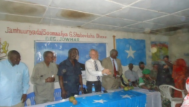 Sabti, May 17, 2014 (HOL) — Ergayga Qaramada Midoobay ee Arrimaha Somalia Danjire Nicholas Kay iyo wafdi uu hoggaaminayo ayaa maanta gaaray magaalada Jowhar oo ah xaurnta gobolka Shabeellada dhexe, isagoo kulammo la qaatay maamulka degmadai yo kan gobolka.