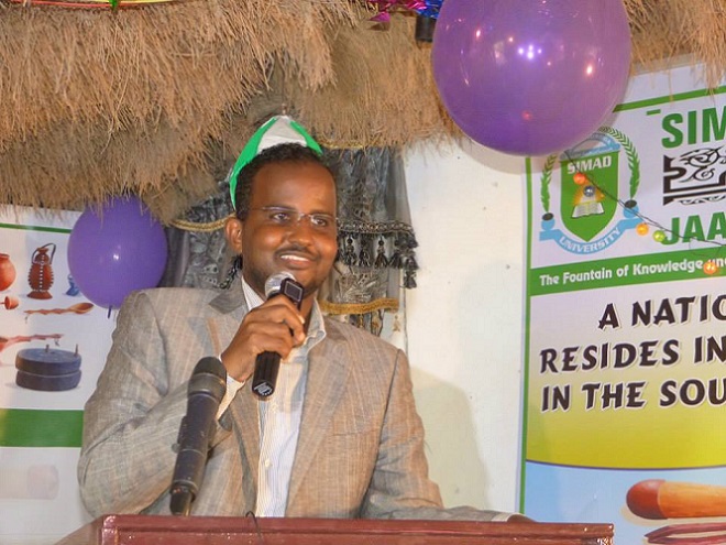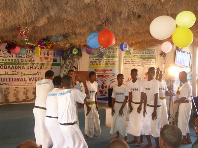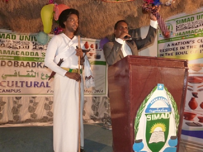 Sabti, May 17, 2014 (HOL) — Munaasabad lagu furayay toddobaadka dhaqanka oo lagu qabtay manta xarunta weyn ee jaamacadda SIMAD ayaa waxaa ka qayb-galay wasiirka hiddaha iyo tacliinta sare, abwaanno iyo fannaaniin Soomaaliyeed, qorayaal, waaliddiin, macallimiinta, maamulka iyo ardayda jaamacadda SIMAD ee magaalada Muqdisho.