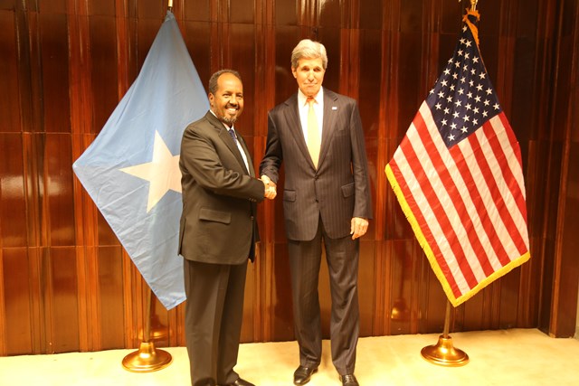 Axad, May 04, 2014 (HOL) — Qoraal kasoo baxay Wasaarada Arrimaha Dibadda ee Maraykanka, ayaa lagu faah faahiyey kulan magaalada Addis Ababa ku dhex maray Madaxweynaha Soomaaliya Xasan Sheekh Maxamuud iyo Xog-hayaha Arrimaha Dibadda ee Maraykanka John Kerry.