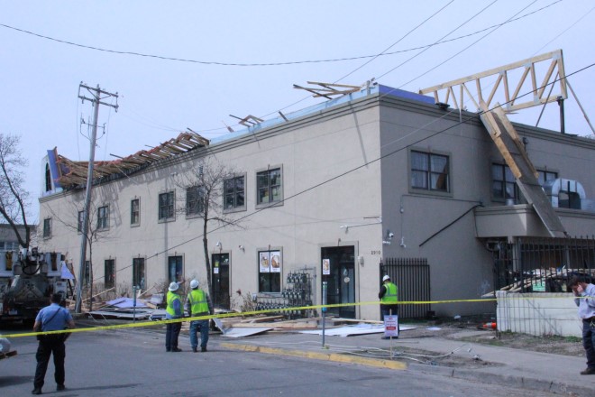 Talaado, May 06, 2014 (HOL) — Dhisme ka socday suuqa Karmel oo ah midka ugu weyn ee ay Soomaalidu ku leeyihiin magaalada Minneapolis ayaa aroornimadii saakay waxaa ku dhufatay dabeyl xooggan, taasoo sababatay in suuqa uu gabi ahaan gudaha isugu dhaco, ma jirto cid wax ku noqotay, laakiin waxaa xiran suuqa oo ka koobnaa labo qaybood.