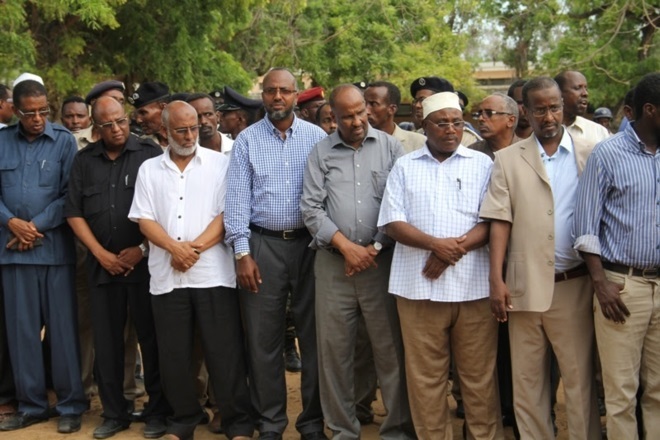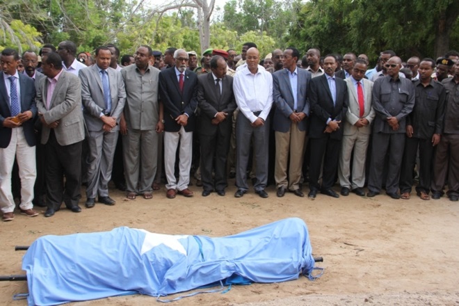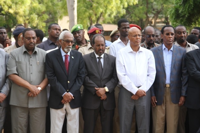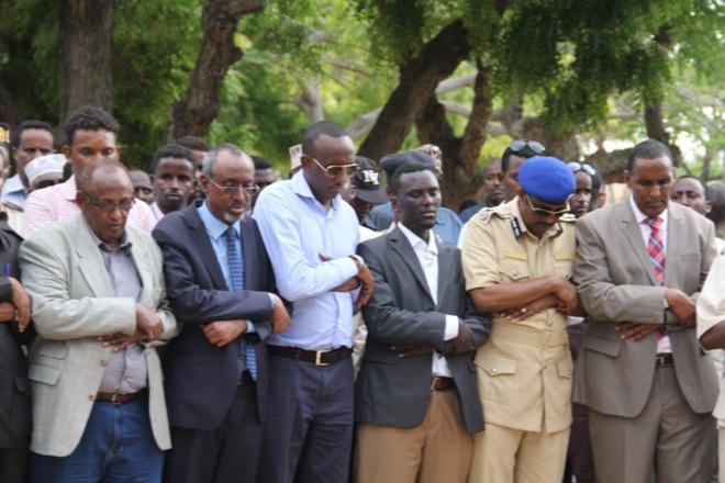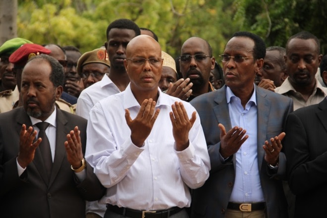 Madaxweynaha Somalia, Xasan Sheekh Maxamuud, guddoomiyaha golaha shacabka, Maxamed Sheekh Cismaan (Jawaari) iyo ra’iisul wasaare C/weli Sheekh Axmed ayaa si wadajir ah uga qaybgalay aaska marxuumka.