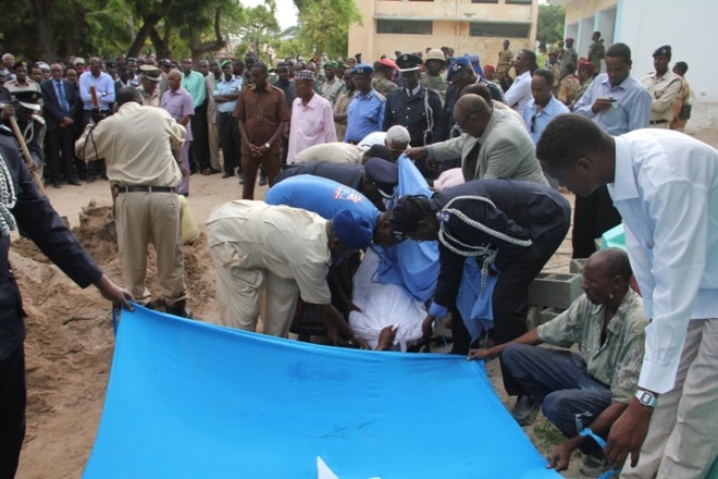 Axad, November 02, 2014 (HOL) — Madaxda dowladda Soomaaliya ayaa ka qayb-galay aas Qaran oo gelinkii dambe ee maanta loogu sameeyay dugsiga tababarada booliiska ee Jen. Kaahiye (Scola Bulisio) taliyihii ciidanka booliiska Somalia, Jen. Maxamed Sheekh Xasan Ismaaciil oo Khamiista si lama filaan ah ugu geeriyooday Muqdisho.