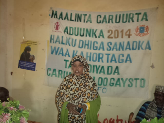 Waxaa kaloo munaasabadda hadal ka jeedisey Caasha Axmed Cumar oo in ka badan 30 sano ahayd macallimad wax ka dhigta dugsiyada Buuhoodle, ahna guddoomiyaha daladda ururadda haweenka gobolka Cayn ayaa ku borrisay inay dhexdooda is-taakuleeyaan il-gaar ahna lagu eego qoysaska danta yar ee aan awoodda buuxda u lahayn daryeelka ubadkooda.
