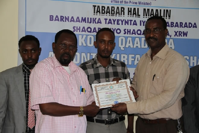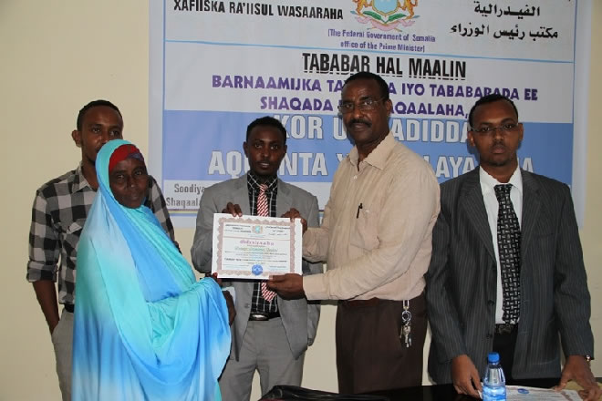Ugu dambeyn, waxaa shahaadooyin la guddoonsiiyay qaar ka mid ah shaqaalihii ka faa’iideystay tababarka ay qabatay Waaxda Shaqada, Shaqaalaha iyo tababarrada ee Xafiiska Ra’iisul Wasaaraha.