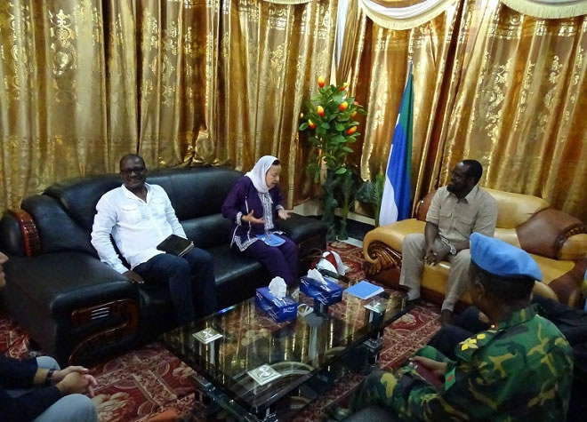 Khamiis, 06 November, 2014 (HOL) :-Wafdigan ay horkaceeysay kuixgeenka wakiilka Qaramada MIdoobay u qaabilsan Soomaaliya Miss Fatixa Saruur ayaa maanta soo gaaray magaalada Kismaayo iyadoo wafdigani uu kulan la qaatay madaxweeynaha maamulka Jubba Sheekh Axmed Max’ed Islaam (Axmed Madoobe).