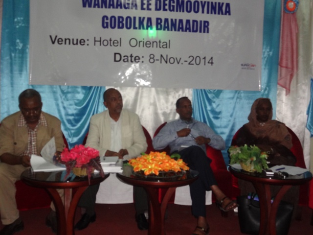 Axad, November 09, 2014 (HOL) — Tababar la xiriira Maamul wanaaga iyo hogaaminta ayaa Muqdisho looga furay shalay oo Sabti ahayd maamullada degmooyinka gobolka Banaadir, iyadoo tababarkan ay ka qeyb galayaan ilaa 65-xubood isugu jira Gudoomiye, Kuxigeeno, Xoghayaasha iyo waaxaha kala duwan ee degmooyinka.