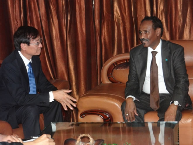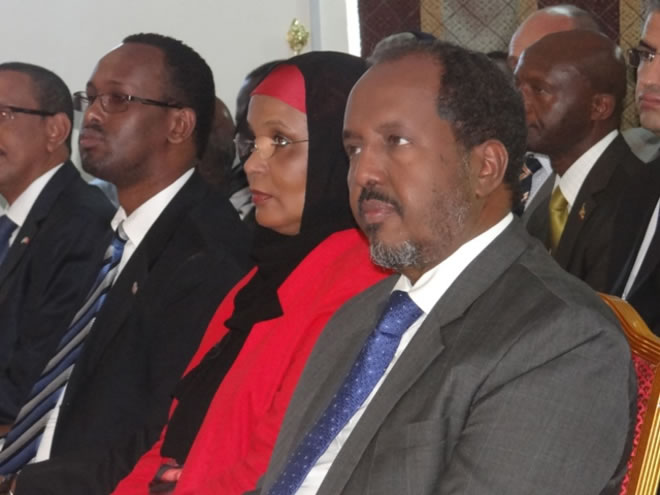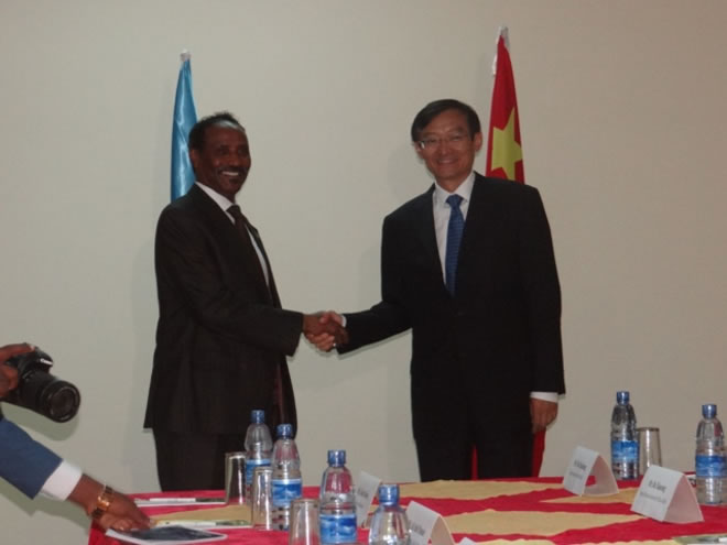 Ugu dambeyn, madaxweynaha Somalia iyo Wasiir ku xigeenka wasaaradda arrimaha dibadda Shiinaha ayaa si wadajir ah xarigga uga jaray safaaradda Shiinaha ee Soomaaliya.